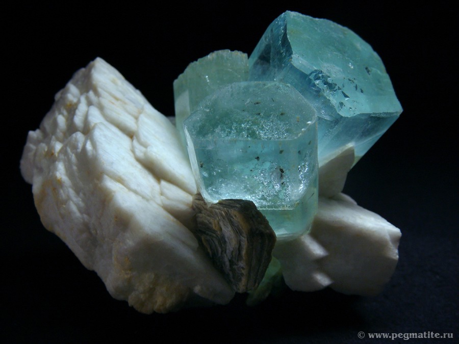 Aquamarine on albite