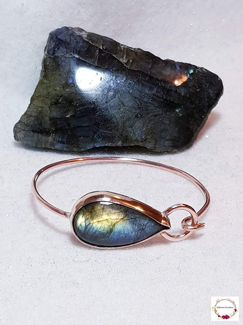 “My inspiration for this piece came from the Labradorite itself,” she said. “The Labradorite has this lovely copper-colored labradorescence going across it, as well as a bit of pink.