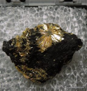 This arsenic trisulfide mineral has a Mohs hardness of 1.5 to 2. It is also a photosensitive mineral, which is known to produce a white film if exposed to light for long periods of time, according to information at minerals.net. With this being the case, it’s recommended orpiment be stored in an enclosed space away from direct exposure to light. In addition to its sensitivity to light and more fragile structure, as an arsenic trisulfide it does contain a certain amount of arsenic, which makes it toxic to handle.
