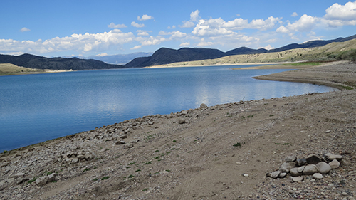 Ruby Dam impounds water from the Ruby River, forming Ruby Reservoir. In the summer,