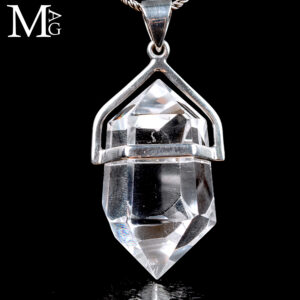 Rounding out the collection is a selection of wearable mineral art, including a Lemurian quartz pendant set in silver, blending natural crystal structure with artisan craftsmanship.