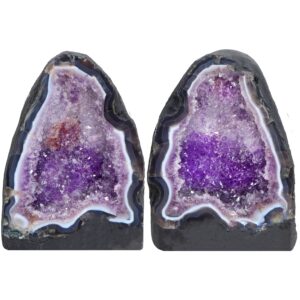 Brazil is well represented with a HAPAX spessartine gemstone, noted for its striking ruby-red hue and architectural crystal growth, alongside a dramatic matched pair amethyst geode from Ametista do Sul—an iconic source of deep purple quartz formations.