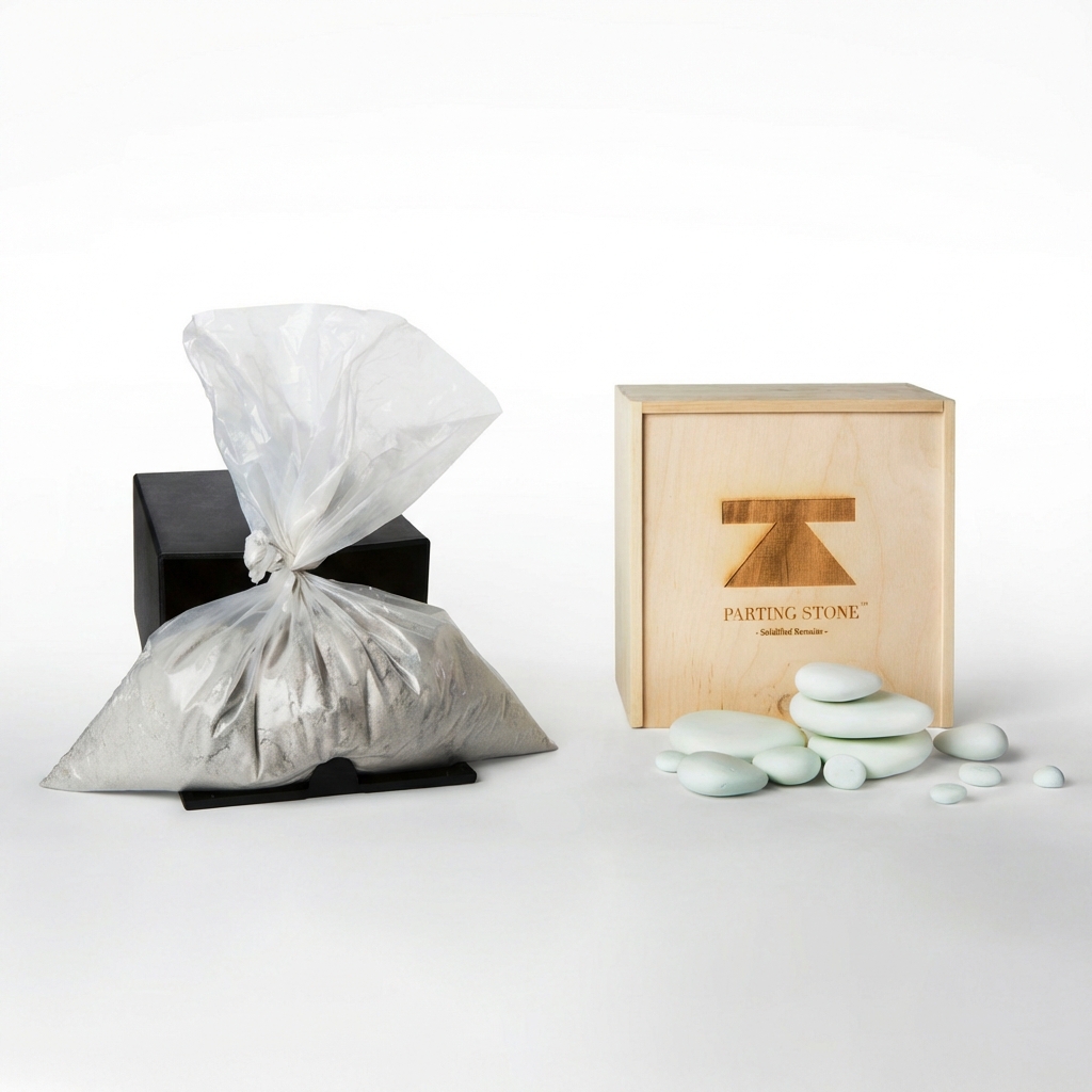 Parting Stone created this category after founder Justin Crowe lost his grandfather and recognized that cremated ashes create an impossible decision: keep them forever or let them go. Working with Los Alamos National Laboratory, he developed a patented solidification process that gives families a third option.